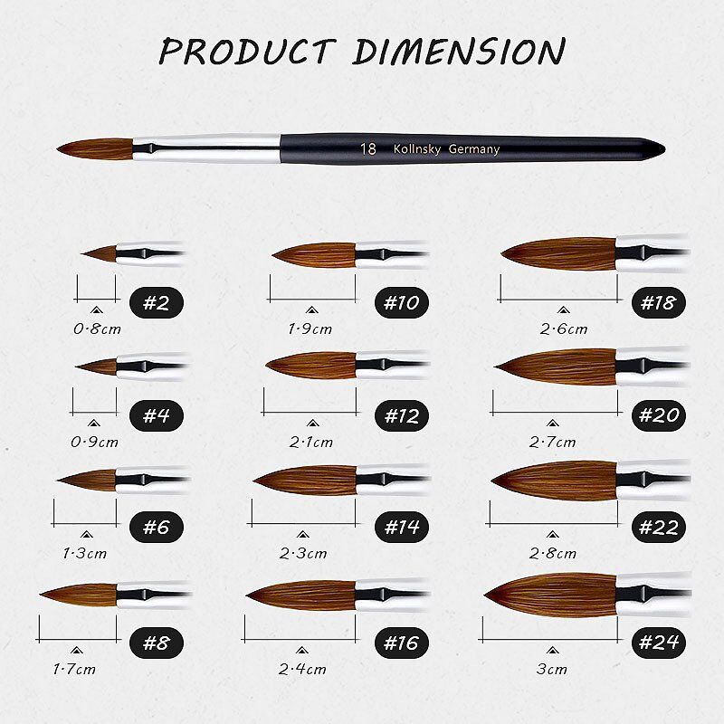High-quality Kolinsky Acrylic Nail Brushes for lawless acrylic nail application. this nail brush ensures optimal control and smooth application. Ideal for professionals and enthusiasts alike.
