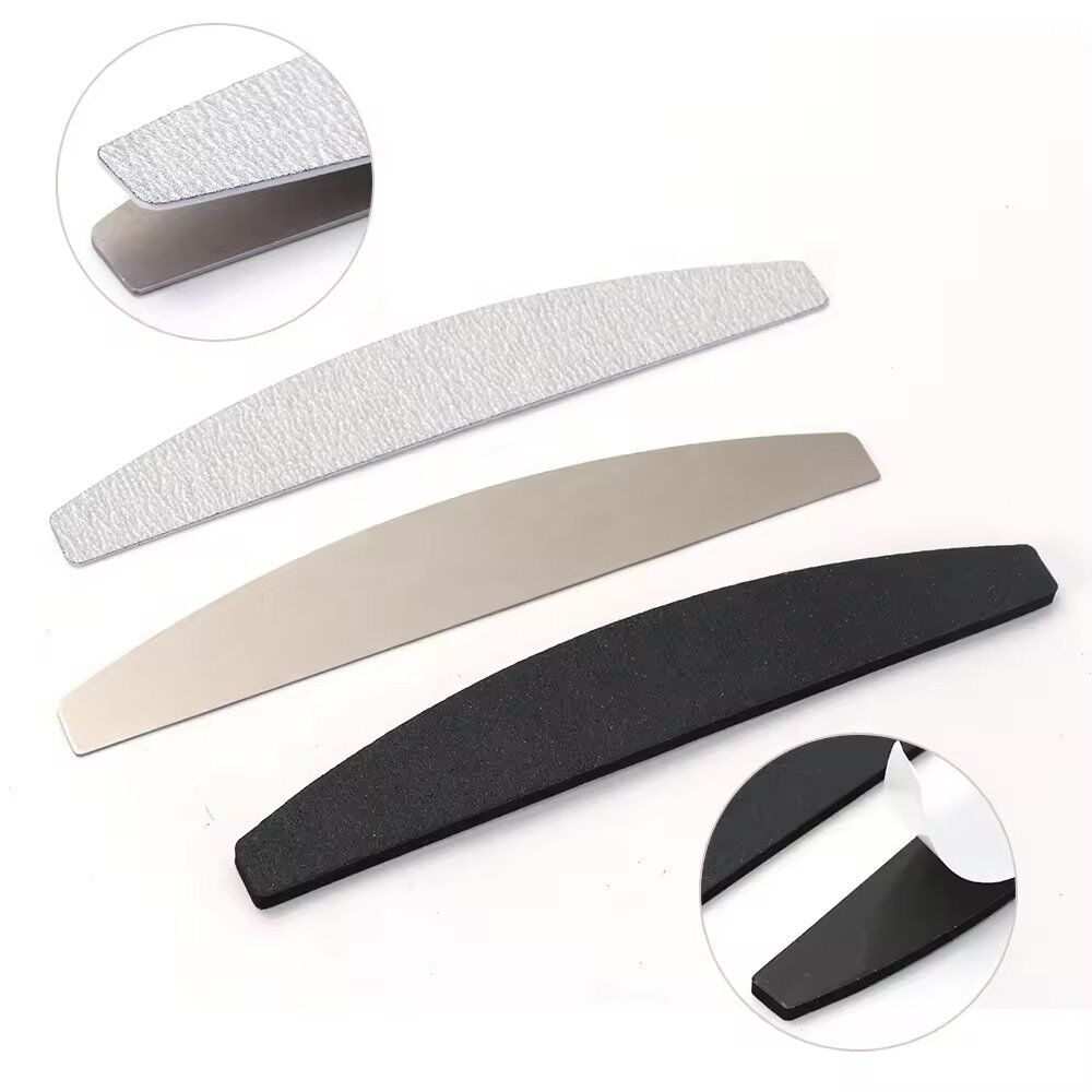 The **Metal Nail File Core & Replacement Sandpaper File** offers a sturdy, reusable base with self-adhesive, disposable refills for quick, hygienic swaps. Ideal for salons, it supports various grits (100, 120,150, 180, 240, and 100/180 buffer), ensuring professional results and an eco-friendly solution.