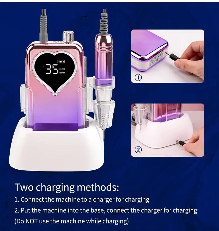 this nail drill Machine 35000 rpm is perfect for both beginners and professional technicians. Ideal for shaping, filing, and polishing nails efficiently.
