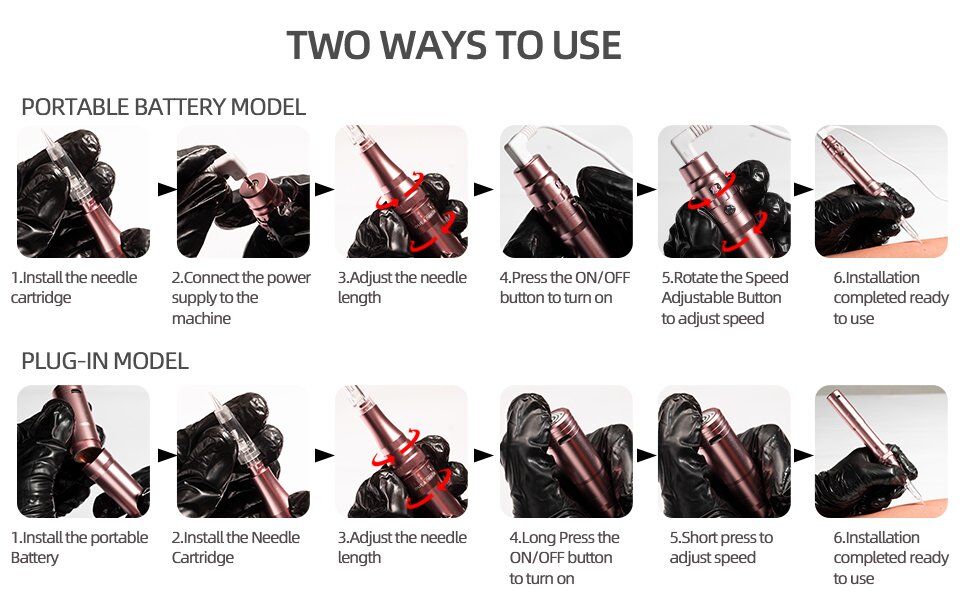 Compatible Needle Sizes: 1R, 3R, 5R, 5F, 7F, 9 Pin, 12 Pin, 36 Pin, Nano Microneedle. Battery Capacity: 900mAh Battery Life: Approx. ~ 2 hours.